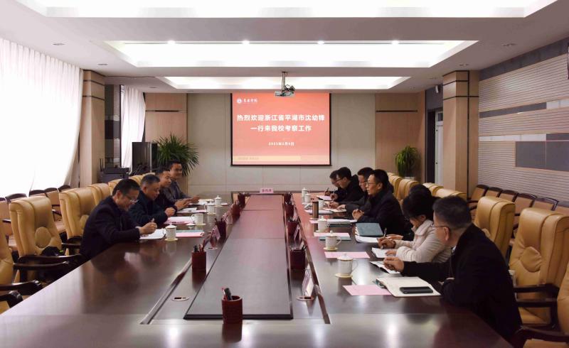 2月9日,浙江省平湖市政协副主席沈幼锋、人力资源和社会保障局副局长王伟明等一行四人莅临bat365考察调研,双方围绕校地合作、毕业生就业等工作进行了深入交流,bat365在线中国官网登录入口党委常委、副院长刘宝琦出席并主持会议,招生就业处、化学化工系、矿业工程系、建筑系、物理系、数学系等部门负责人参加会议。