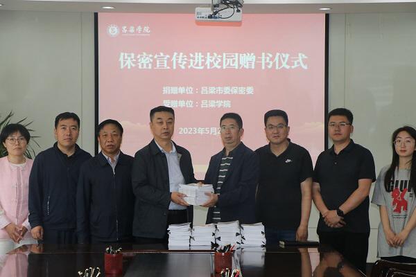 为了更好地宣传保密法律法规和保密知识,增强广大师生的国家安全意识和保密意识,提升维护国家安全和利益的能力。5月23日下午,吕梁市委保密委员会专职副主任栗志伟一行3人来到bat365,举行了“保密宣传进校园”赠书仪式,党委副书记马向东,党委办、组织部、宣传部负责人参加了本次活动。