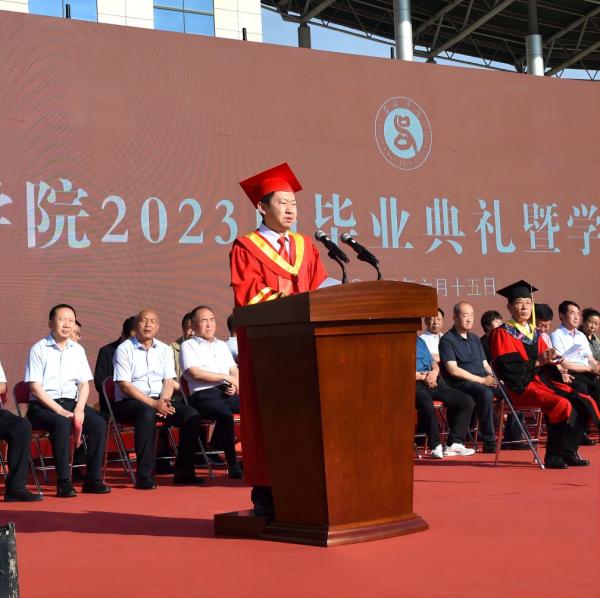 薛晋文作了题为《勇担时代重任 绽放青春梦想》的毕业致辞。他代表学校全体教职员工,向全体毕业生表示最诚挚的祝贺,向一路陪伴他们成长的家长和老师表示衷心的感谢。他表示,四年来,广大毕业生同学识大体、顾大局、明大义,与学校同舟共济,共克时艰,战胜了疫情,推动学校事业取得了新的成绩,广大同学也有了新成长、新进步,同学们的表现令人赞许,未来无限可期!