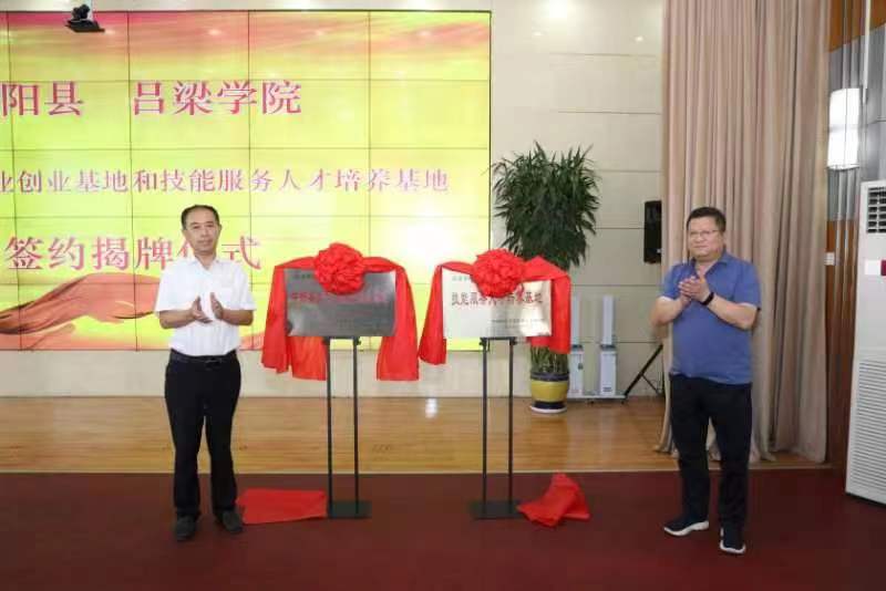 会上,双方签订了《关于校地合作共建“两个基地”的协议》;王三虎与霍建国共同为“中阳县大学生就业创业基地”“中阳县技能服务人才培养基地”揭牌。