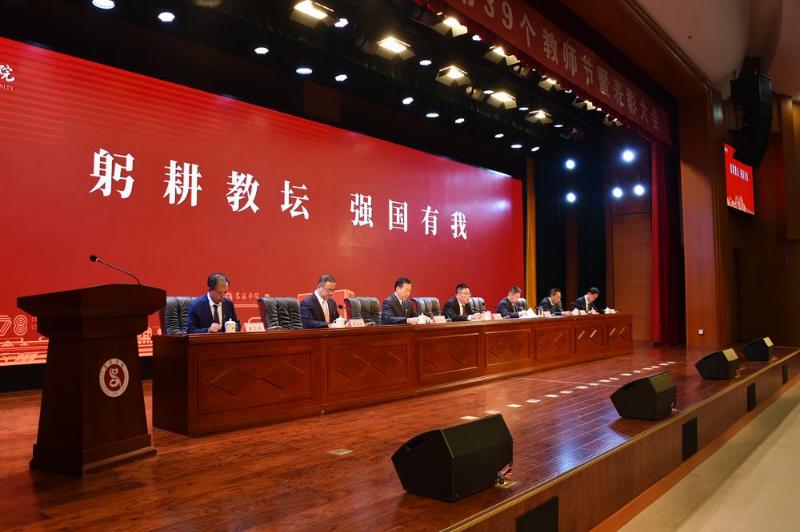 9月8日,bat365在线中国官网登录入口在弘智楼一层报告厅隆重召开以“躬耕教坛 强国有我”为主题的庆祝第39个教师节暨表彰大会。校党委书记殷杰出席并主持会议,党委副书记、院长薛晋文讲话,党委副书记薛光武,党委常委、副院长刘宝琦、李宏荣、王枝胜、王三虎出席会议,全校副处级以上干部,受表彰人员,教师代表,荣退休教师代表,学生代表,共350人参加会议。