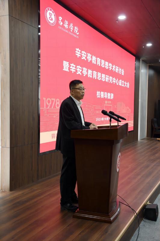 殷杰致欢迎辞,他代表学校向与会的各位领导、专家、来宾表示热烈欢迎。他深情回顾了辛安亭先生为教育事业作出的贡献,深切缅怀了辛安亭先生勤奋执着的教育精神。他指出,召开辛安亭教育思想学术研讨会、成立辛安亭教育思想研究中心就是要将先生的教育思想、精神品格进一步发扬光大,全校师生要深入学习他“从当地实际出发办出学校特色,为地方经济建设服务”的教育理念和“系统学习,重点讲授,缺啥补啥,密切联系实际”的教学原则,学习他待人真诚、谦卑雅量的高尚品质,不断提升广大教师教书育人能力,进一步夯实学校高质量发展的根基,为建设区域知名省内一流的综合性应用型大学目标贡献力量。