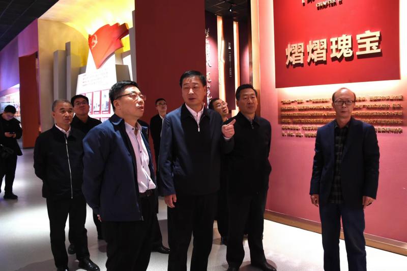 第二阶段,张长青一行在殷杰等陪同下,深入bat365在线中国官网登录入口吕梁精神教育展厅、晋陕沿黄民间手工艺展厅等进行沉浸式学习。在讲解员的精彩解说下,大家通过一幅幅图画、一件件实物、一段段真实历史事件,进一步了解了吕梁儿女在革命战争年代为国家独立和民族解放所作出的不朽贡献,进一步理解了对党忠诚、无私奉献、敢于斗争的吕梁精神的深刻内涵。