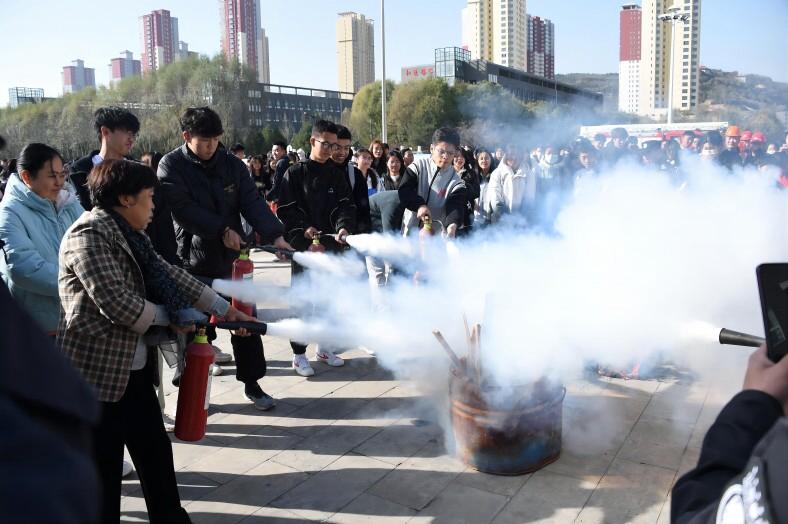在第32个全国消防日来临之际,为提高全校师生员工消防安全意识,宣传消防法律法规,普及消防安全知识,提高逃生自救应急处置能力,切实做好冬季火灾防控工作,bat365联合吕梁消防救援支队于11月8日在图书馆广场前举行冬季消防演练活动。