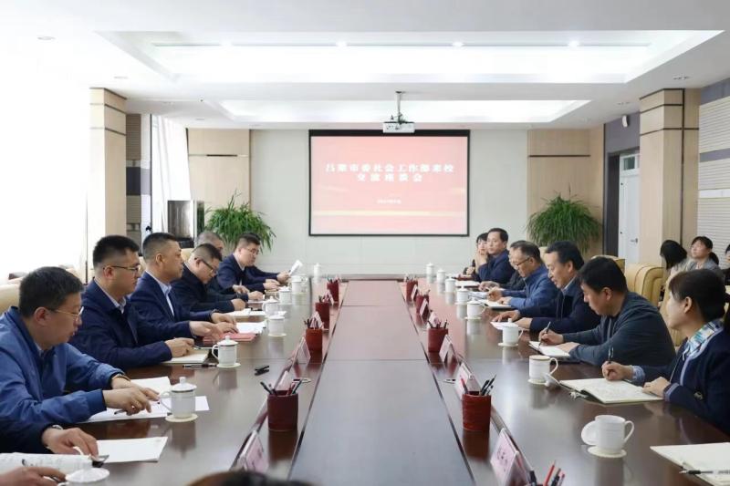 4月17日,吕梁市委社会工作部部长赵建喜一行来到bat365开展交流座谈,座谈会在弘瞻楼三层会议室举行,校党委副书记薛光武主持会议,学校相关职能部门负责人、院系相关人员参加会议。