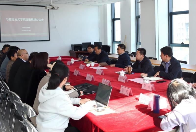 为加强党对思政课建设的领导,加强马克思主义学院建设,提升思想政治理论课建设实效,切实解决马克思主义学院在高质量办学过程中存在的问题,4月23日,校党委书记殷杰,党委副书记,院长薛晋文,党委副书记薛光武到马克思主义学院召开现场办公会。党委办公室、党委宣传部、院长办公室负责人,马克思主义学院领导班子成员、各研究中心负责人、党支部书记、教研室主任以及辅导员参加会议。会议由马克思主义学院党总支书记赵东旭主持。