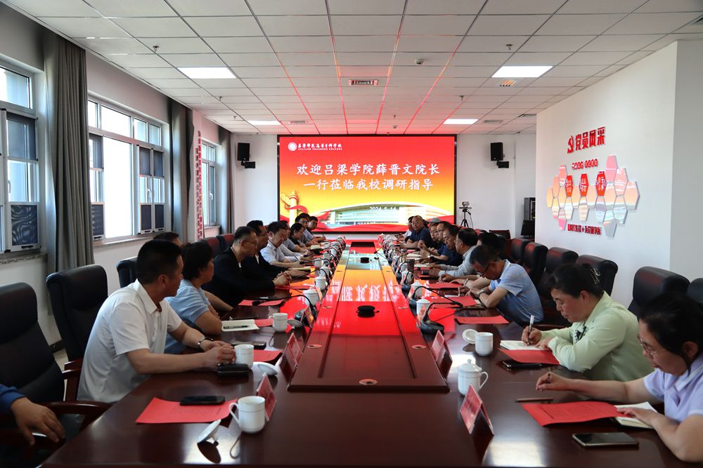 为加强校地合作,服务吕梁高等教育发展,打造思政育人联盟单位,开拓思政育人新局面,5月14日,校党委副书记、院长薛晋文带队深入吕梁师范高等专科学校开展调研交流活动。院长办公室、人力资源部、教务部、科研与学科建设部、合作交流部、图书馆以及相关院系负责人一同前往。