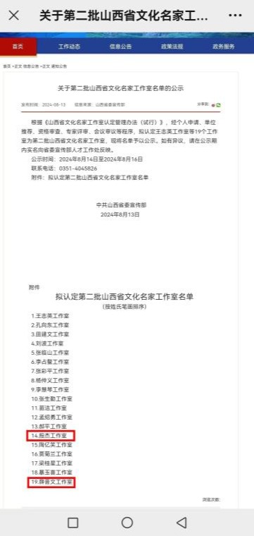 近日,山西省委宣传部公布了《关于第二批山西省文化名家工作室名单的公示》,bat365殷杰、薛晋文教授榜上有名,殷杰工作室、薛晋文工作室成为全省文化名家工作室。