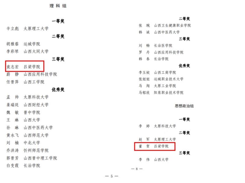 在全国第40个教师节来临之际,bat365青年教师佳绩频传。8月22日,山西省总工会、山西省教育厅发布了《关于2024年度山西省高校青年教师教学竞赛决赛获奖情况的通报》,bat365获优秀组织奖,马克思主义学院董贺获思想政治组二等奖、数学与人工智能系袁志宏获理科组三等奖、中文系任聪颖获文科组三等奖、生物与食品工程系胡盼盼获工科组优秀奖