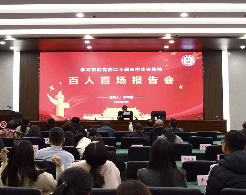 宣讲会上,李华强以“学习贯彻党的二十届三中全会精神——新时代新征程的一份纲领性文件”为题,围绕“深刻认识全会的重大意义,深刻领会习近平总书记重要讲话精神,全面准确理解《决定》提出的重大举措,全力以赴抓好全会精神的贯彻落实”等四个方面,全面、系统、深入地阐释了党的二十届三中全会精神。他指出,学校上下要把学习全会精神作为党的创新理论武装工作的一项重大任务,按照中央、省委的统一部署要求,结合学校实际,在全校掀起学习宣传贯彻全会精神的热潮,奋力谱写中国式现代化新篇章。
