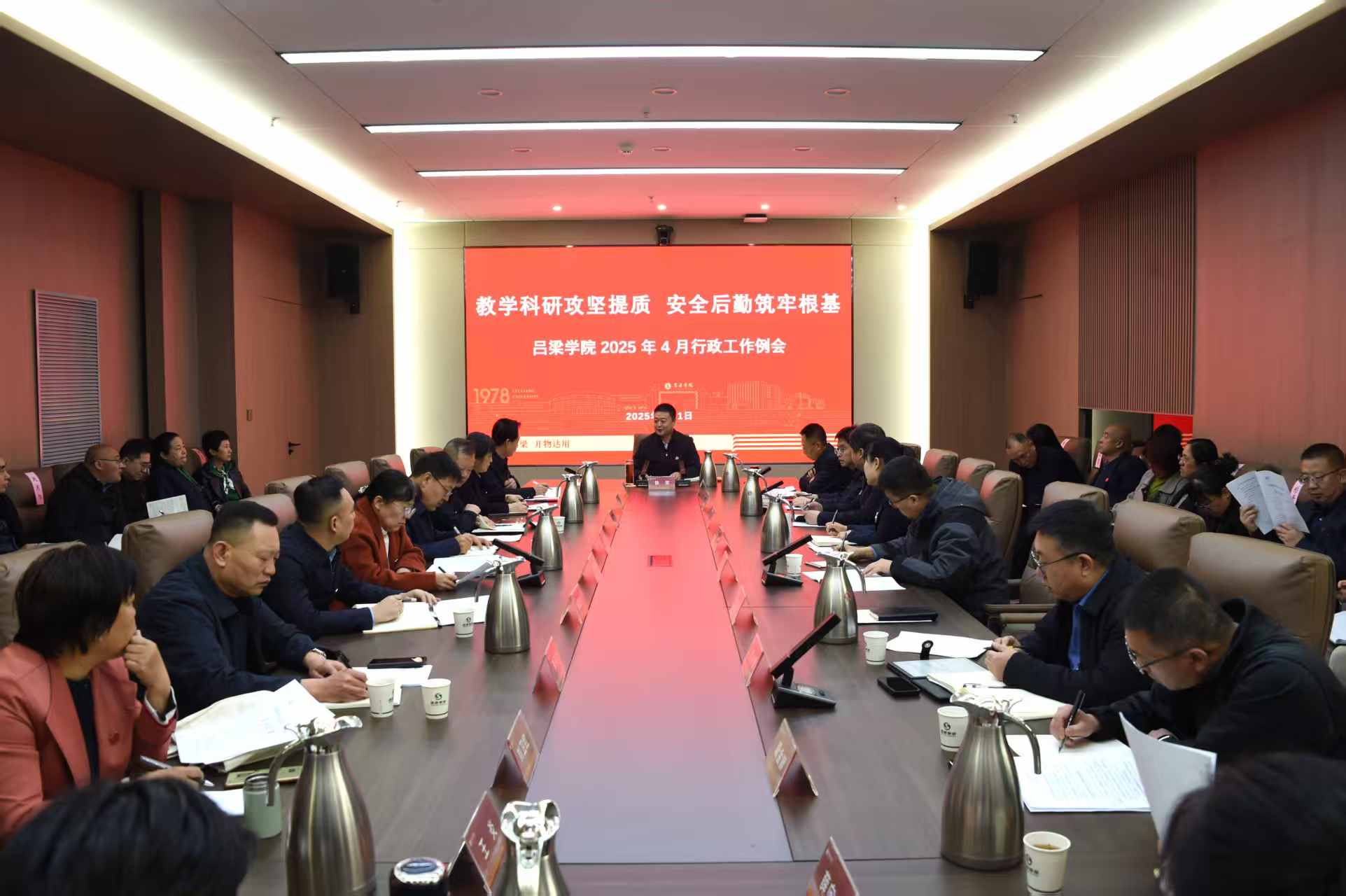 会上,铁军就学校4月行政重点工作作出全面部署,并提出四点要求。一要凝心聚力,全力推进专业认证和审核评估工作。已申报师范专业认证的院系要进一步压实主体责任,严格按照时间节点开展工作,确保高质量通过认证。评估中心要建立动态跟踪机制,同步推进审核评估准备工作,确保上半年诊断评估顺利开展。二要深入推进教学质量建设,增强育人工作实效。教务部、评估中心牵头,组织开展教学中期检查专项行动,引导教师进一步强化教学质量意识,有效提升教学效果。招生就业工作部联合各院系抢抓4月就业黄金窗口期,深入开展访企拓岗专项行动,多渠道提高毕业生就业率和就业质量。三要增强科研攻坚意识,提升有组织科研成效。科研与学科建设部统筹推进国家自然科学基金和教育部项目申报收尾及国家社会科学基金项目组织申报工作,力争国家级科研项目立项数取得新突破。聚焦吕梁市“985”重点产业链布局科研团队,做好省市级科研项目储备。四要健全隐患排查机制,提升风险防控能力。各单位要密切关注春季火灾高发期,强化“三管三必须”责任意识,守好校园安全底线,常态化开展危化品管理、消防演练等专项行动,建立实验室设备、燃气管道等重点领域动态监测机制,坚决遏制校园安全事故发生。