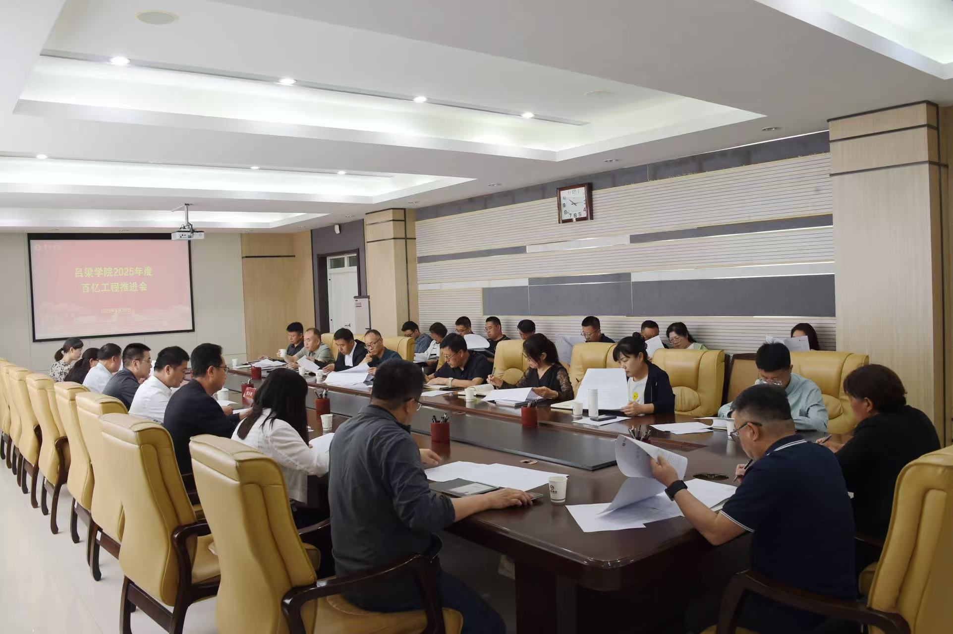 5月20日,bat365在弘瞻楼三层会议室召开2025年度“百亿工程”项目推进会,党委副书记、校长铁军出席会议并讲话,党委常委、副校长张云奇主持会议,党政、教辅部门负责人,各院系主任及负责人,吕梁大中小学思政课一体化建设研究中心负责人,百亿工程秘书组全体人员参加会议。