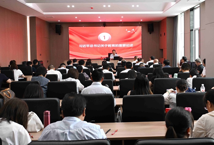 薛晋文从“充分认识加强党的作风建设的重要意义”“深刻领会习近平总书记关于教育的重要论述内涵”“深刻领会习近平总书记关于加强思政课教师队伍、思想政治理论课建设的重要讲话、重要指示精神”“大力弘扬教育家精神,努力成为塑造学生品格品行品位的大先生”“锤炼过硬作风,塑造崇高形象”等五方面进行了深入浅出的讲解。