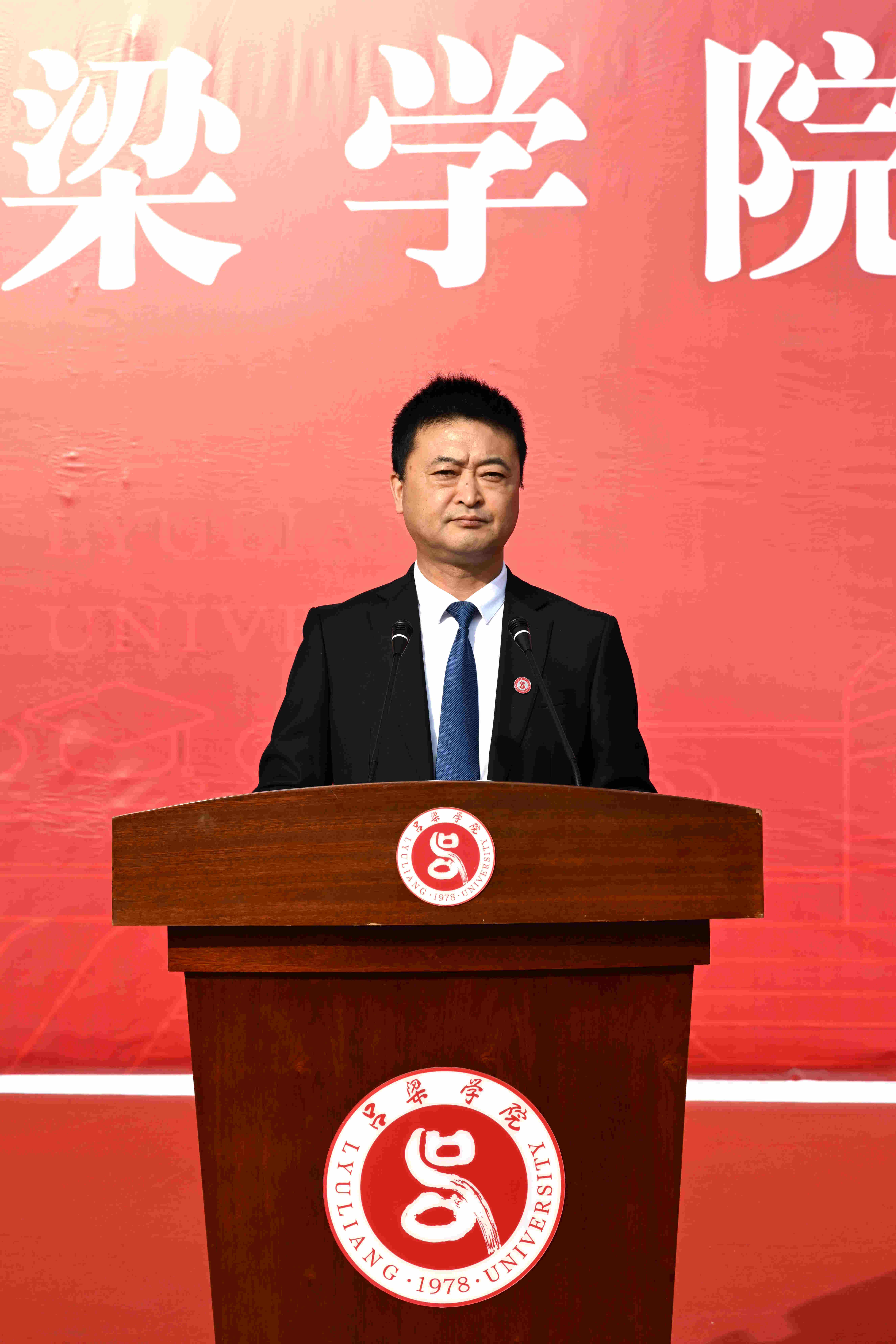 铁军以《传承吕梁精神 深耕创新实践 书写青春担当》为题致辞,向新生提出三点期望:一要坚定理想信念,厚植家国情怀,做精神文化的传承者。希望同学们在大学时光里,主动汲取红色养分,让红色基因真正融入血脉、刻进骨髓。二要勤奋学习知识,练就过硬本领,做创新实践的先行者。希望同学们尽快适应自主学习模式,吃透专业理论的同时,主动打破专业壁垒,主动走进实验室,主动对接产业需求,在实践中掌握技术、提升能力,把课本知识转化为创新成果。三要锤炼品德修养,培育责任担当,做社会实践的奉献者。希望同学们积极参与学校社会实践团活动,在实践中锤炼高尚品德,在服务中践行责任担当。他勉励新生积极践行吕梁精神、传承晋绥文化,以志存高远的胸怀、博学实干的行动、砥砺奋进的精神,书写个人成长与民族振兴同向同行的青春篇章!