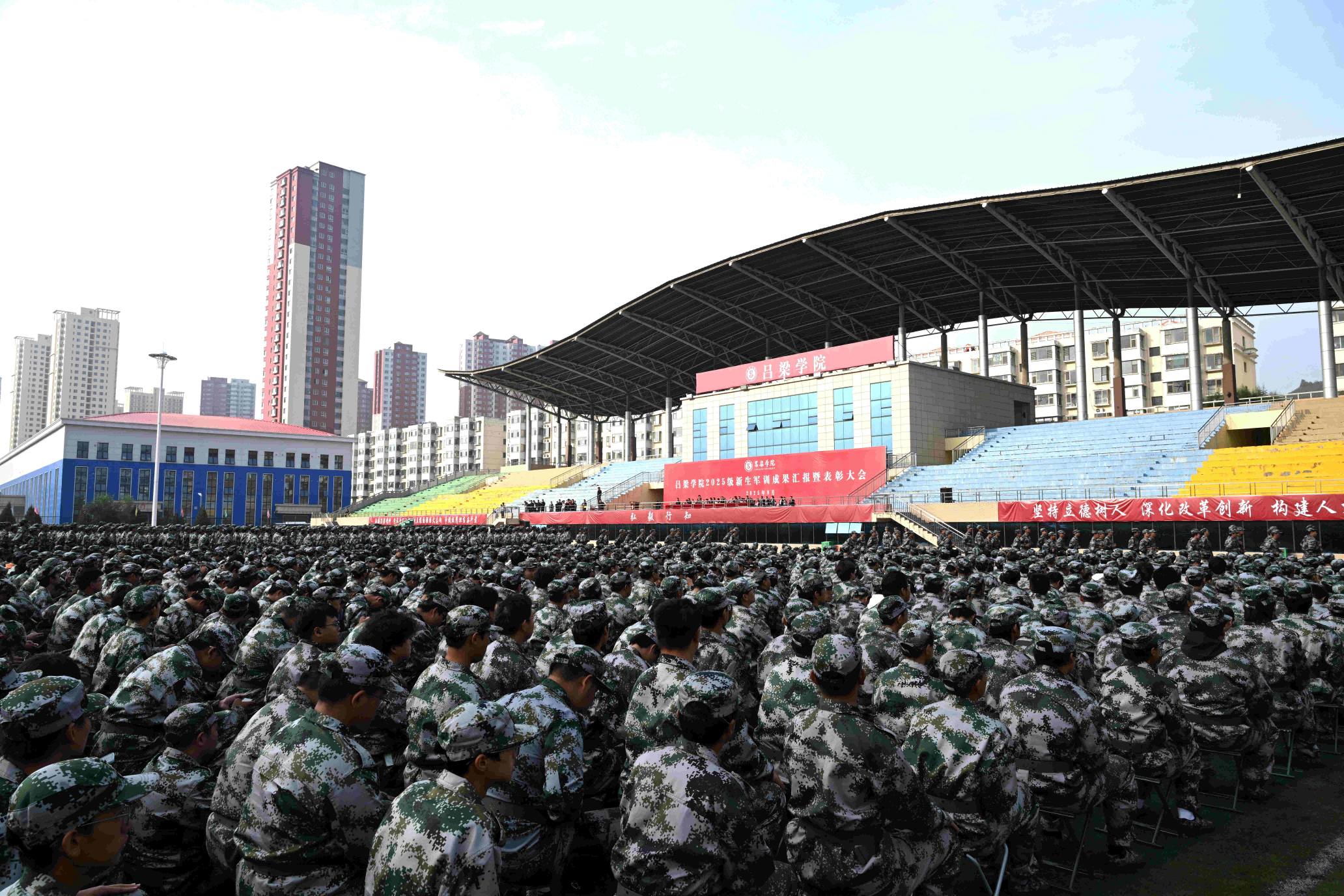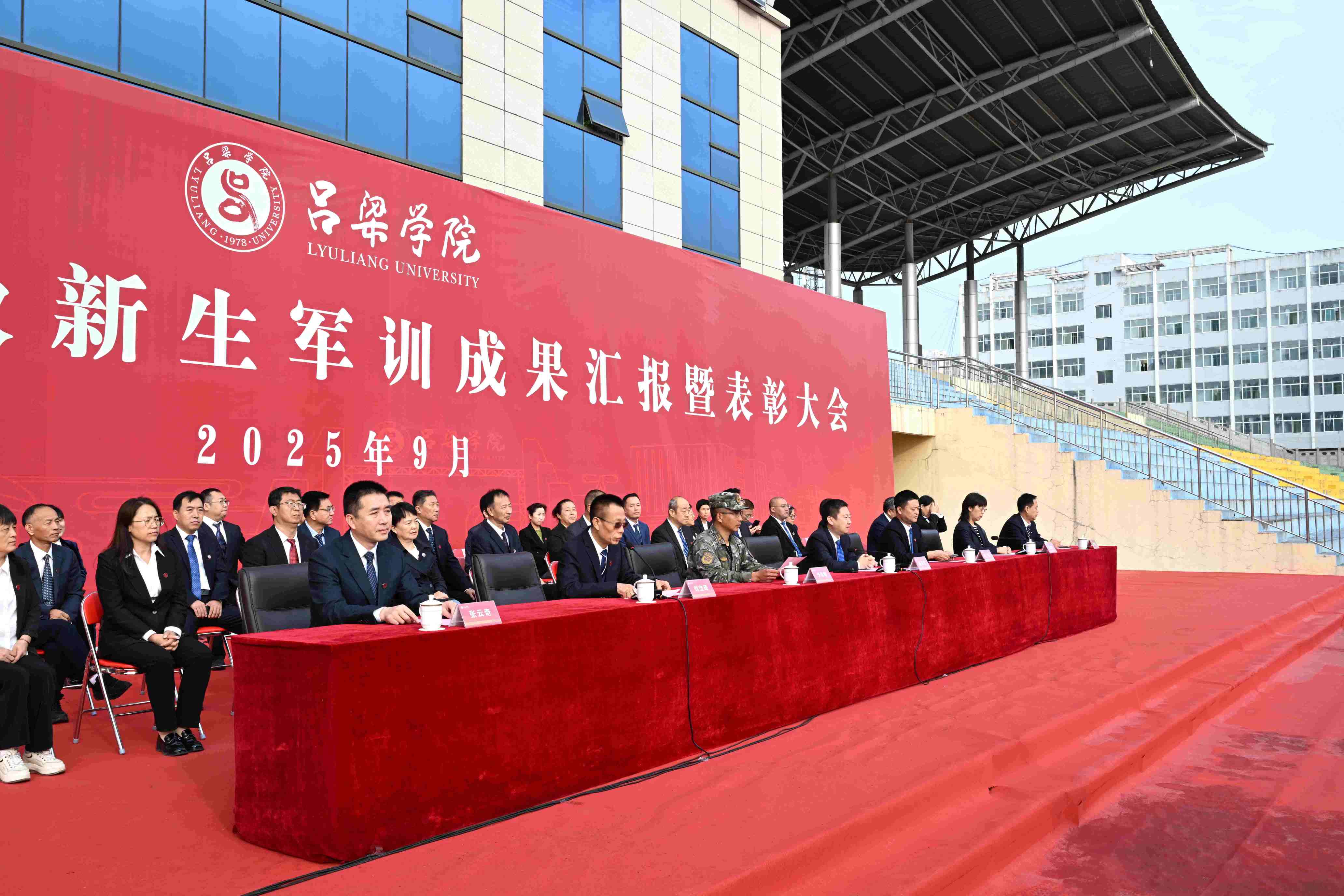9月29日,bat365在田径场举行2025级新生军训成果汇报暨表彰大会。党委书记薛晋文,党委副书记、校长铁军,校领导张雪航、王枝胜、张云奇出席会议,党委常委、副校长刘宝琦主持会议。承训部队首长及教官、党政职能部门负责人、各院系党总支书记、主任,党总支副书记、分团委书记、新生辅导员、2025级全体新生参加会议。