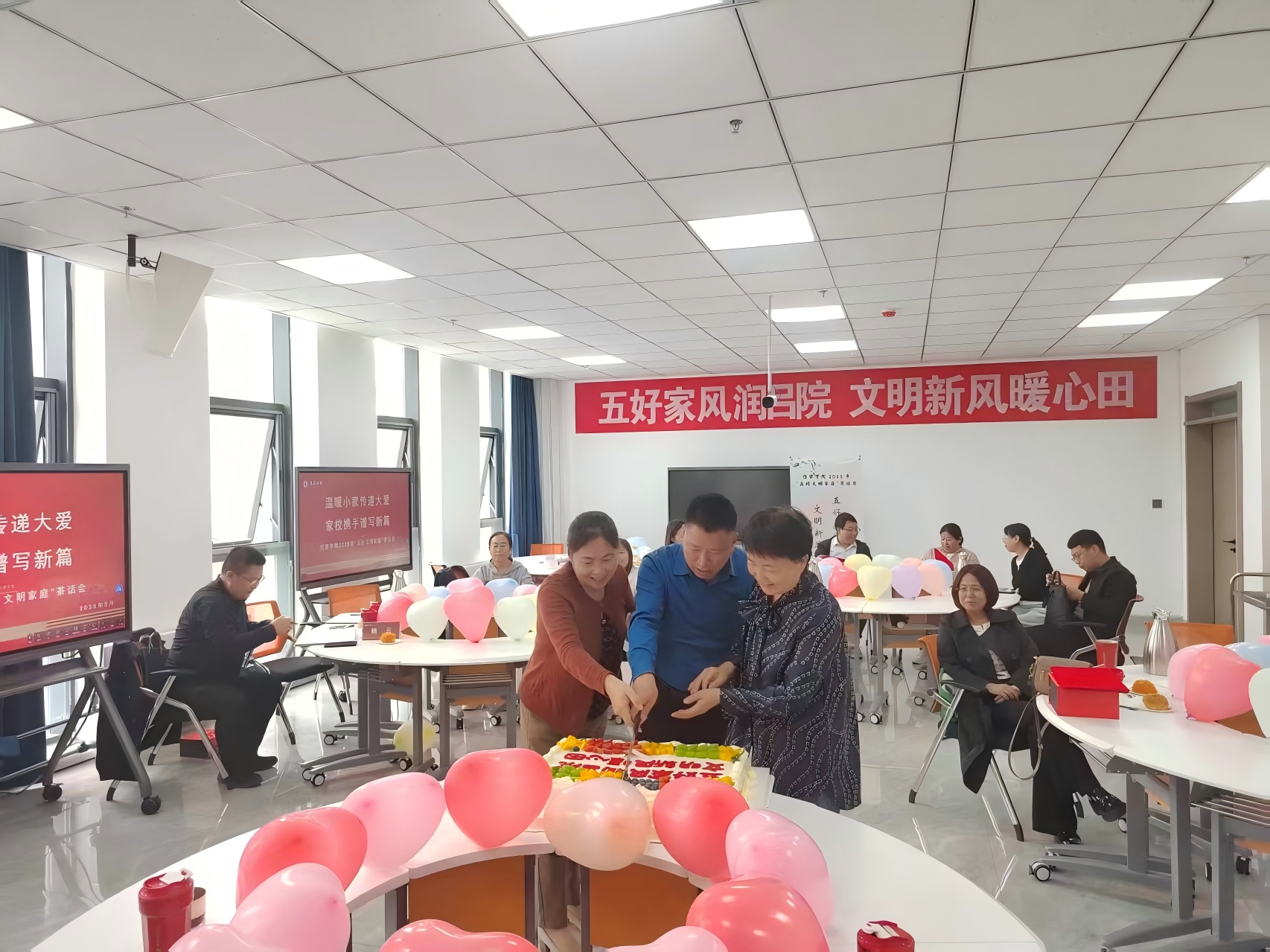 活动中,康志宏宣读了《关于表彰bat365在线中国官网登录入口2025年度“五好文明家庭”的决定》并组织颁奖;武瑞荣宣读了《bat365在线中国官网登录入口五好文明家庭建设倡议书》;李静、于艳琴、成国栋共同执刀,切开刻着“五好家风润吕院 文明新风暖心田”的定制蛋糕,共享喜悦的美好情谊;获奖家庭代表进行了经验分享。