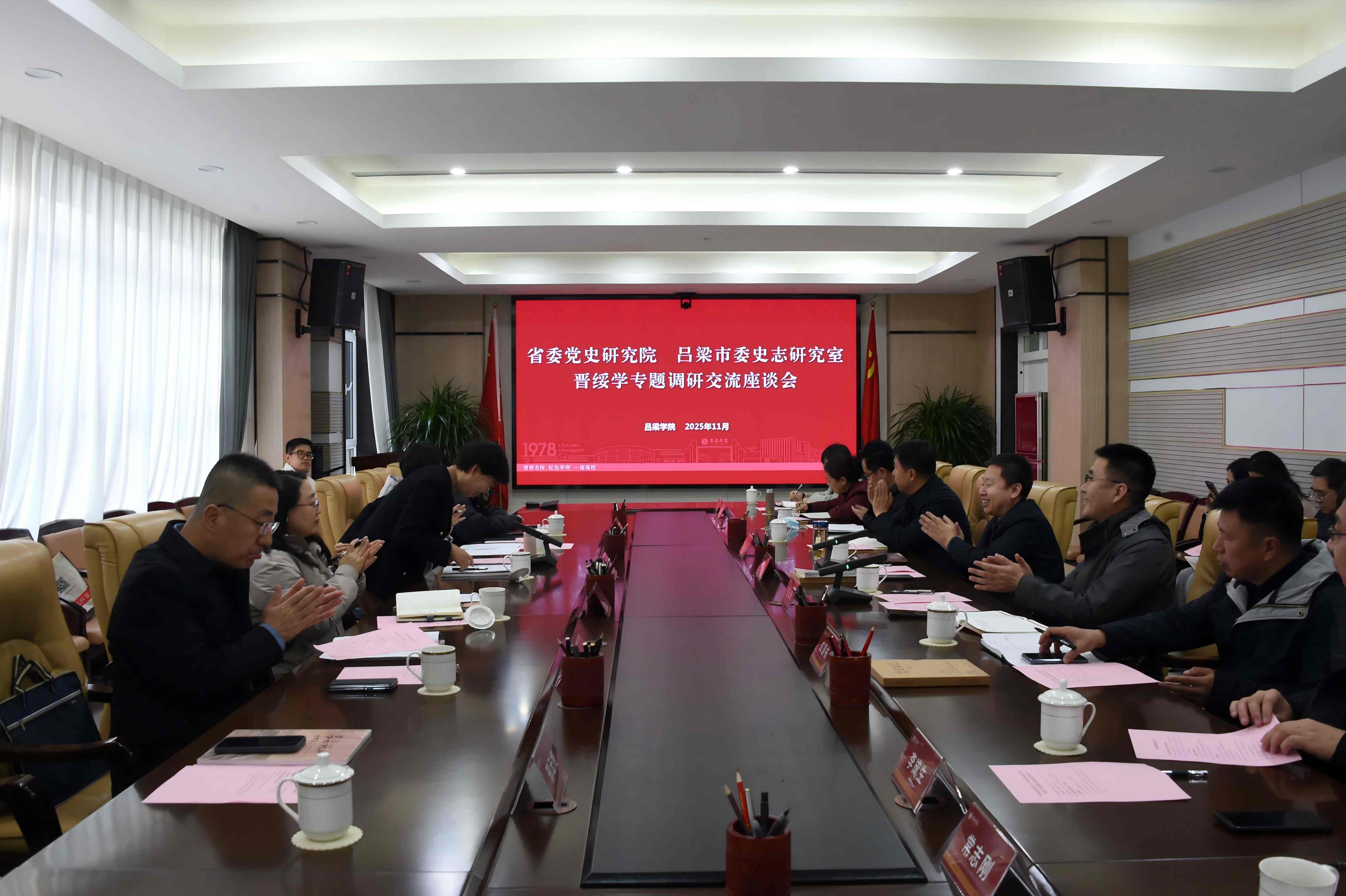 11月25日,省委党史研究院副院长张宏华带领有关部门负责人、吕梁市委史志研究室有关人员莅临bat365专题调研交流晋绥学学科建设情况。校党委书记、晋绥学研究院院长薛晋文,党委常委、副校长、晋绥学研究院副院长张云奇及晋绥学研究院相关人员、相关职能部门负责人参加调研活动。张云奇主持座谈会。