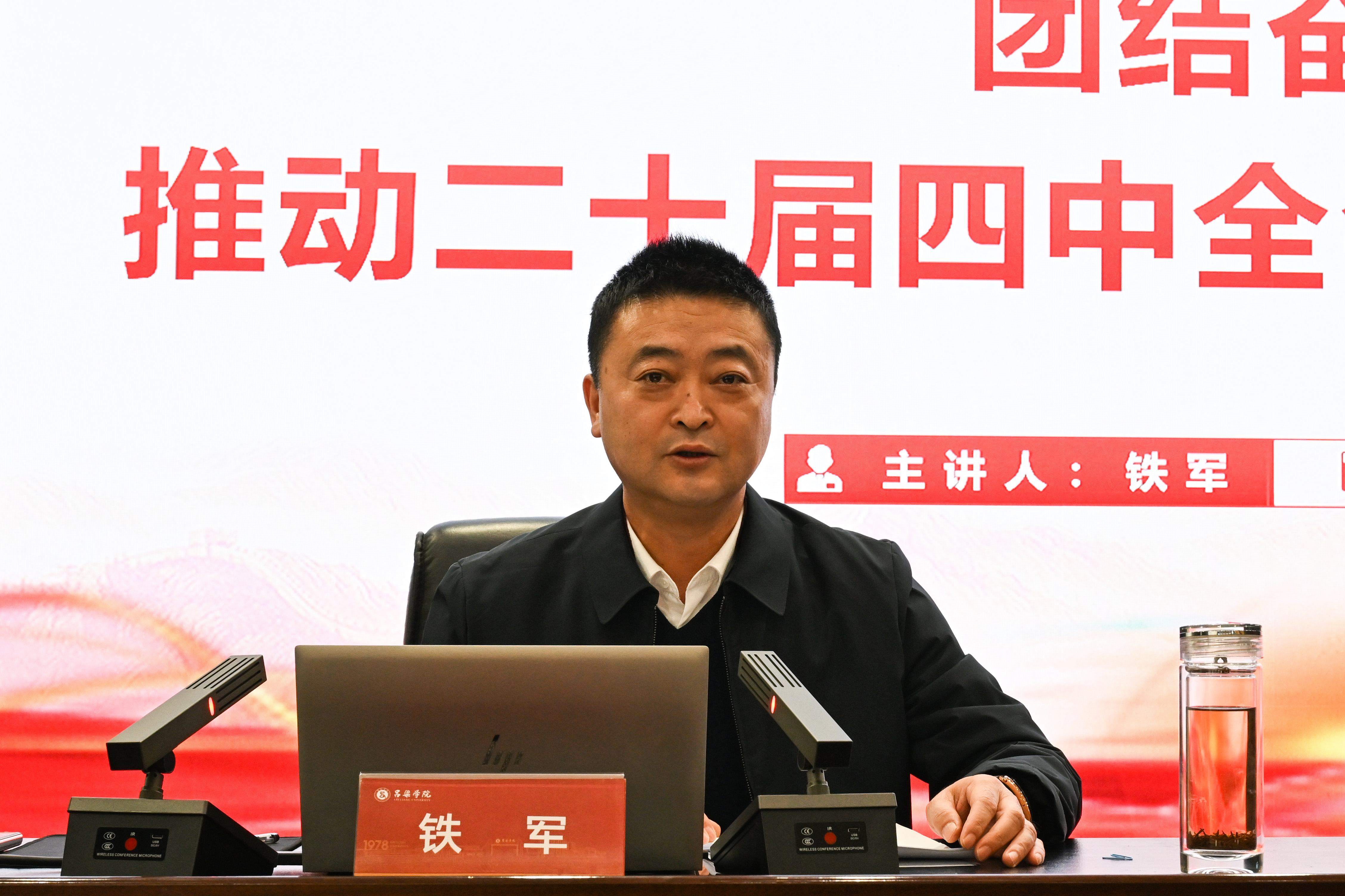 铁军校长要求全体参会人员深刻领悟“两个确立”的决定性意义,不断增强“四个意识”、坚定“四个自信”、做到“两个维护”,牢记为党育人、为国育才的初心使命,将全会精神与自身工作紧密结合,以实干担当把学习成果转化为推动人才培养、学科建设、科研攻关和服务地方发展的实际行动,朝着高水平、地方性、应用型大学建设目标前进,为吕梁转型发展、山西高质量发展和中华民族伟大复兴贡献bat365在线中国官网登录入口的力量。