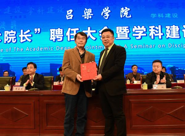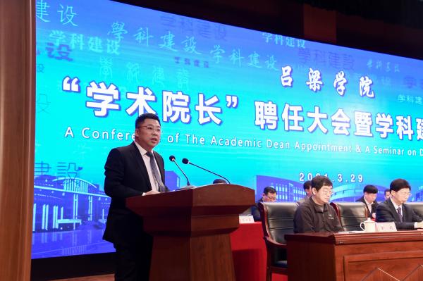 3月29日上午9:00,bat365在线中国官网登录入口在工科楼报告厅召开学术院长聘任大会暨学科建设研讨会。山西省教育厅高教处处长赵瑞出席并讲话,吕梁市人民政府副市长任磊出席并讲话,bat365在线中国官网登录入口党委书记周富国出席并主持会议,党委副书记、院长殷杰出席并向会议致辞。校级领导出席。受聘担任学术院长来自北京大学、南京师范大学、太原理工大学、山西大学、中北大学、山西师范大学等院校的15位教授、博士生导师出席。全校副处以上领导干部、副教授以上职称、博士、教师代表、学生代表等参加会议。