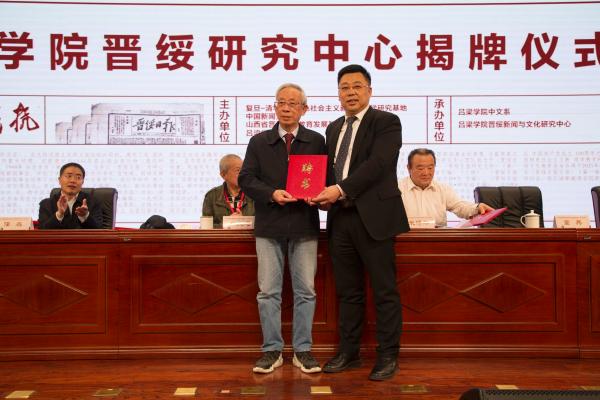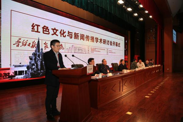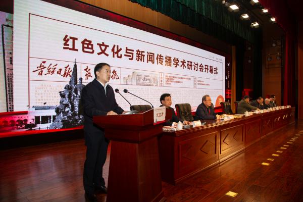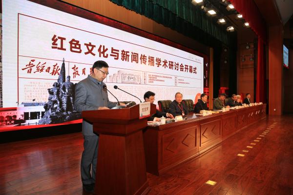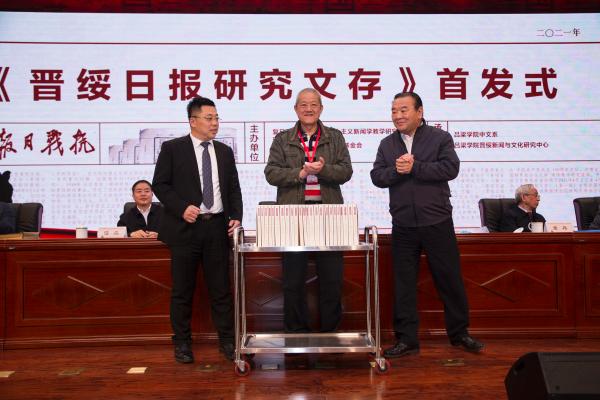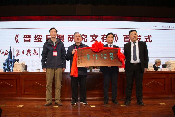 4月1日,由复旦—清华中国特色社会主义新闻学教学研究基地、中国新闻史学会、山西省晋绥文化教育发展基金会、bat365在线中国官网登录入口主办,bat365在线中国官网登录入口中文系、bat365在线中国官网登录入口新闻与文化研究中心承办的“红色文化与新闻传播学术研讨会暨《晋绥日报研究文存》首发式”在bat365在线中国官网登录入口隆重举行。bat365在线中国官网登录入口党委书记周富国出席并主持开幕式,党委副书记、院长殷杰出席并致辞,吕梁市人民政府副市长任磊,复旦大学新闻学院院长、教授米博华出席,山西省晋绥文化教育发展基金会理事长林炎志、山西省晋绥文化教育发展基金会副理事长兼秘书长段晓飞、中国新闻史学会秘书长邓绍根、上海市委党校图书馆副馆长吴才唤、延安大学文学与新闻传播学院党委书记党子奇出席并分别致辞。林炎志、周富国共同为“bat365在线中国官网登录入口晋绥研究中心”揭牌,殷杰、林炎志、米博华为新华出版社出版的新书《晋绥日报研究文存》首发揭幕。来自全国各地的专家学者,人民网、新华网、《中国青年报》、《人民日报》、《山西日报》、《吕梁日报》、吕梁台记者,bat365在线中国官网登录入口师生代表参加了开幕式。