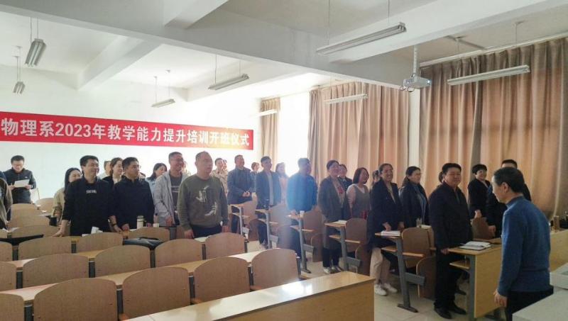 为帮助系部教师提高教育教学水平,增进教师间业务交流,打造高素质教师队伍,4月11日,物理系在综A409教室举办2023年教学能力提升培训开班仪式暨第一讲,系教学名师张吉堂教授主讲,系主任雒卫廷主持会议,系部全体教师参会。