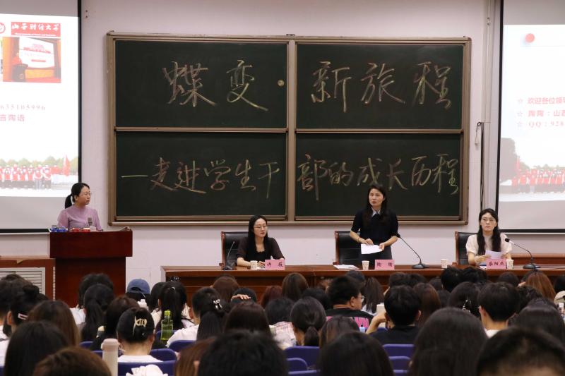6月4日,中文系在道德讲堂进行学生干部成长训练营第五次活动,本次活动邀请第十二届全国高校辅导员年度人物、山西财经大学学生工作部、武装部副部长陶陶,专职辅导员许薇、研究生柴阳燕进行题为“‘蝶变·新旅程’走进学生干部的成长历程”的讲座。系党总支书记武文主持,中文系、历史文化系、经济管理系部分领导、辅导员和学生干部聆听了此次讲座。