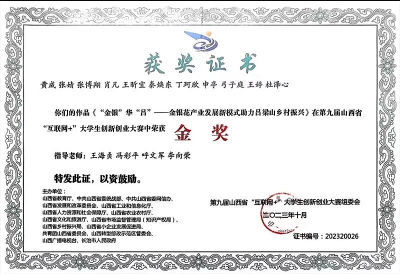 近日,第九届中国国际“互联网+”大学生创新创业大赛(山西赛区)在山西大学落下帷幕。经过激烈角逐,生科系作品《“金银”华 “吕”——金银花产业发展新模式助力吕梁山乡村振兴》”获得山西省金奖,实现了生科系参加“互联网+”大赛金奖的零突破,体现了生科系学生在该项顶级创新创业赛事的水平和实力。