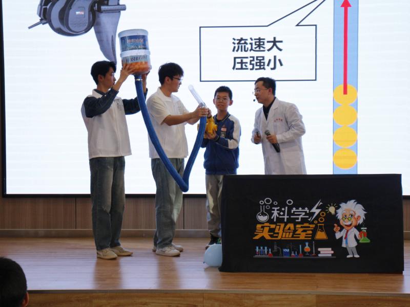 活动中,老师为同学们展示了乒乓球机关枪、马德堡半球实验、掌中火焰、火龙卷、静电章鱼、空气炮等涉及电学以及空气动力学相关科学实验,通过寓教于乐的科普宣传方式,将科学方法、科学理念带入了校园,同学们兴高采烈、争先恐后的参与到实验的互动中。通过让同学们近距离接触科学、感受科学,从小学习科学知识,激发他们的想象力和创造力,切实增强科技创新意识、动手实践能力。