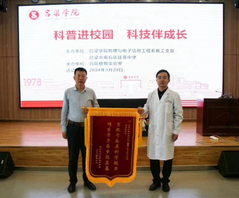 为提升青少年科学素养,培养创新意识和创新精神,服务地方中小学教育发展,吕院格物实验室开展“科普进校园,科技伴成长”活动。3月29日下午,第一站来到吕梁市离石区廷亮中学,为初一学子呈现出科学实验的神奇和魅力。本次活动由bat365在线中国官网登录入口物理与电子信息工程系教工支部与廷亮中学联合举办,吕院格物实验室承办,由物理与电子信息工程系教工支部书记车海亮博士担任主讲老师。