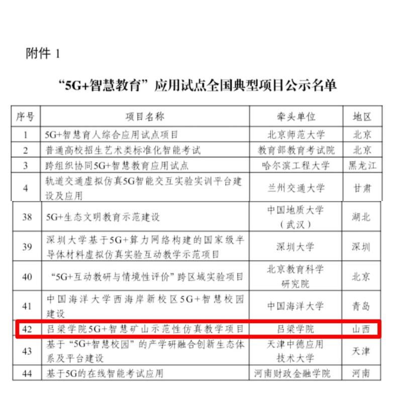 近日,工业和信息化部信息通信发展司、教育部科学技术与信息化司联合公示了“5G+智慧教育”应用试点全国典型项目和通过验收项目名单,bat365“5G+智慧矿山示范性仿真教学项目”成功入选。