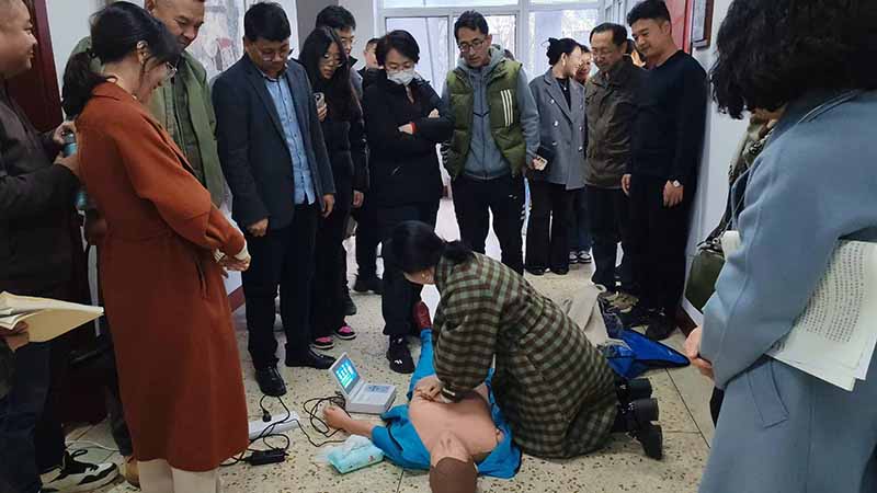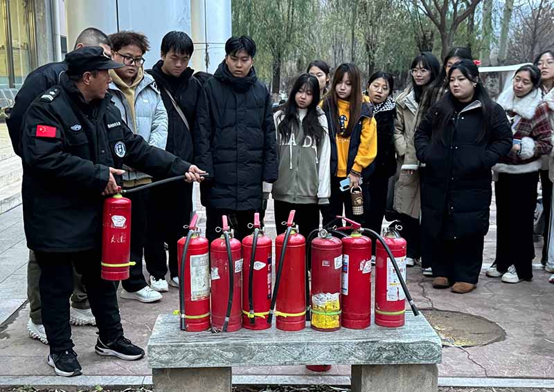 会议第二部分,师生集体观看安全教育视频,并成立了由艺术系教师杜宇峰、梁虎为指导教师,由各级学生组成的安全应急小分队。会议还邀请体育与健康系分团委书记、体育保健课教师李晓海带领大家学习“海姆利克”急救法、心肺复苏等技能,并进行了师生实操演练。同时还邀请了安全保卫部的专业人员指导疏散逃生技能、消防灭火器材的使用和实操演练。