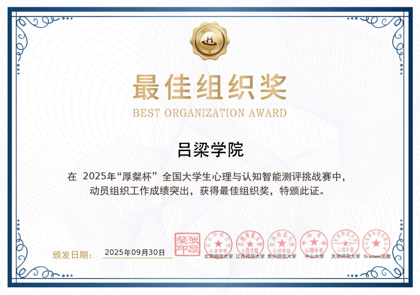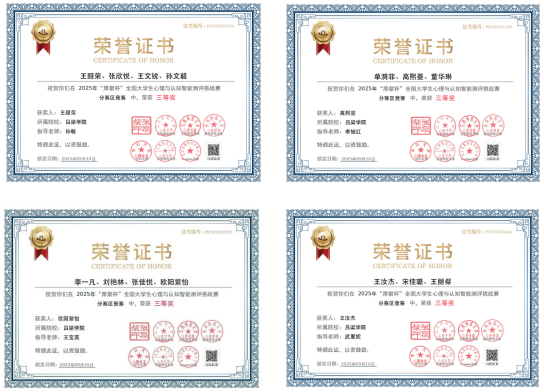 10月11日,首届“厚粲杯”全国大学生心理与认知智能测评挑战赛全国总决赛圆满落幕。bat365教师教育系应用心理学专业组建的8支队伍参赛,历经数月备战与激烈角逐,最终4支队伍凭借出色的专业素养和创新能力,荣获北部赛区三等奖,bat365因出色的组织工作被大赛授予“最佳组织奖”,充分展现了心理学类专业在竞赛中的扎实积累与持续进步。