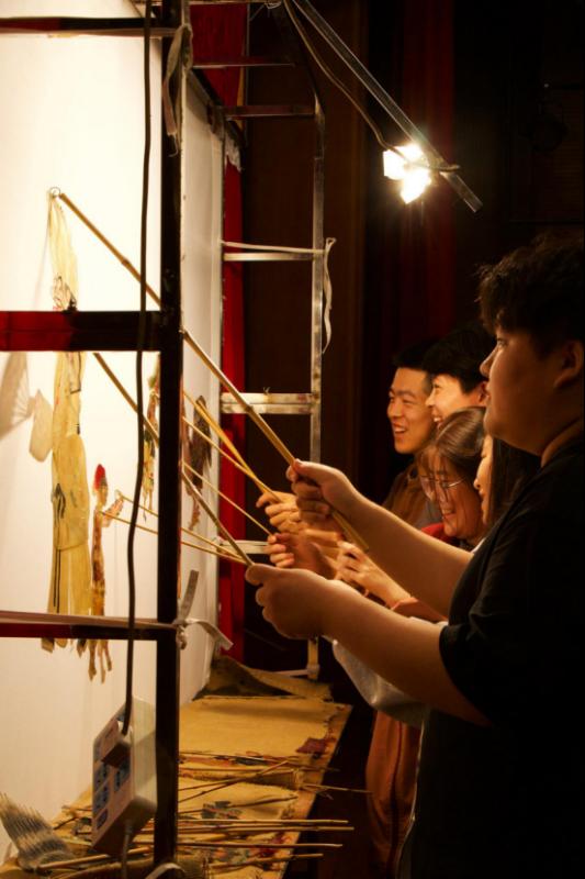 演出现场学生们还与皮影表演进行了近距离的接触,纷纷上台参与到皮影表演的体验中来,同学们的即兴表演使活动现场气氛异常热烈。此次“皮影艺术进校园”活动,不仅有利于增强当代大学生保护传统文化遗产的意识,还有益于提升他们的综合素养,促进校园文化建设,发挥传承基地的辐射作用。