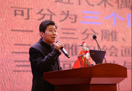 讲座中,侯建川通过大量图片和视频资料系统讲授了孝义皮影的起源发展、传承脉络、艺术流派、雕刻技艺、演奏乐器等知识,引发学生们对传统文化的极大兴趣,提升了他们对非物质文化遗产保护重要性的认识。随后,侯建川及艺人们共同演出了传统皮腔灯影戏《大变化》和皮腔木偶戏《五更鸣》,充满激情的吹奏,精彩刺激的打斗,铿锵有力的唱段,韵味十足的唱腔,有板有眼的动作,引得台下喝彩阵阵、掌声不断。