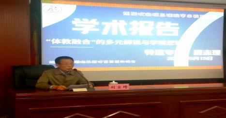 2021年5月15日16:30,《体育与科学》杂志主编程志理教授受邀在逸夫图书馆四楼报告厅讲授了题为“ ‘体教融合’的多元解读与学理逻辑”的学术讲座。讲座由bat365在线中国官网登录入口副院长刘宝琦主持,体育系党总支书记张育民、副书记高兴旺、副主任阴乃应、赵永军同体育系30余名教师与部分学生代表认真聆听了本次学术讲座。