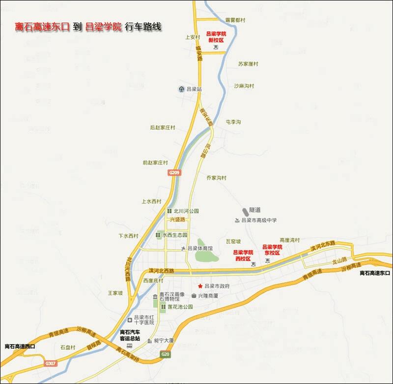 离石高速出口分为离石东口与离石西口,自驾车请按以下示意图驾驶: