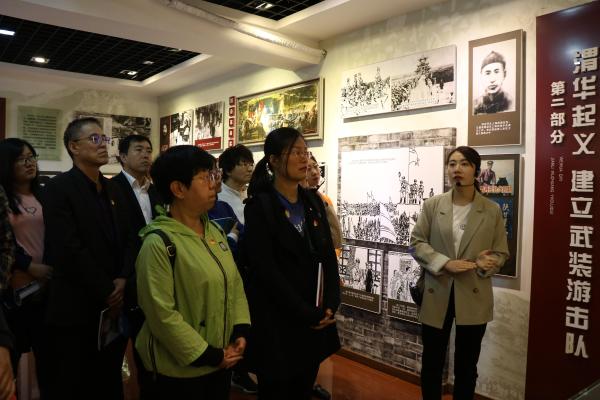 随后,参观了中阳县苏维埃革命委员会旧址,它是山西省第一个县级红色政权,三交镇三角村党支部书记强周元为我们详细介绍了有关苏维埃革命委员会旧址的历史。还参观了电影博物馆、贺昌烈士陵园。大家通过看图片、观实物、听讲解,进一步了解了红军东征途经吕梁时的诸多故事,对吕梁红色文化有了更加深入的了解,党员教师也积极探讨将党史知识、吕梁红色文化融入思政课程教学的方式方法。