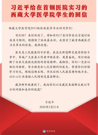 同学们通过学习交流,深刻领会着习近平总书记“自新冠肺炎疫情发生以来,西藏高校医学人勠力同心、主动请缨,在不同的地方、以不同的方式,义无反顾地投入到共同防控疫情、守护人民健康工作中,以实际行动展现了救死扶伤、医者仁心的崇高精神”“北京大学援鄂医疗队全体“90后”党员,你们青年人同在一线英勇奋战的广大疫情防控人员一道,不畏艰险、冲锋在前、舍生忘死,彰显了青春的蓬勃力量,交出了合格答卷。广大青年用行动证明,新时代的中国青年是好样的,是堪当大任的!”“青年一代有理想、有本领、有担当,国家就有前途,民族就有希望”。两封回信的重要精神鼓舞着同学们,大家表示要牢记于心,明确自身使命,不惧风雨、勇挑重担,无私奉献,乐于付出,做一名合格的大学生,承担起更多的责任,做更积极主动的有为表现。