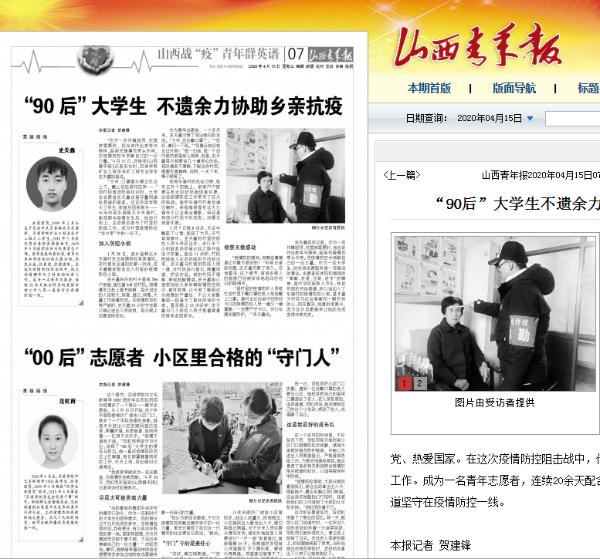 “作为一名共青团员,在国家需要时,我应该作出表率与榜样,起到先锋模范带头作用,在疫情防控中贡献自己的一份力量。”4月13日,在接受《山西青年报》记者采访时,bat365在线中国官网登录入口矿业工程系采矿工程专业学生史天鑫如是说。