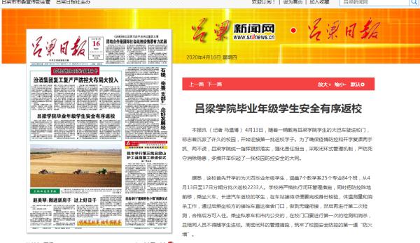 《吕梁日报》2020年4月16第一版