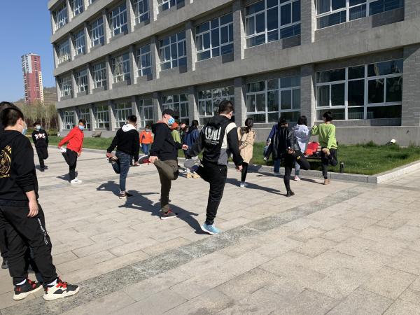 4月22日,工作之余我提前给学生制定了一套体能恢复训练计划,坚持运动锻炼一定要量力而行、循序渐进的训练原则,意在引导学生们自主进行体育锻炼,通过健康的生活方式,提高身体素质。一日之计在于晨,4月23日早晨八点我组织了25名学生来到综合教学楼A座前,学生们佩戴口罩并保持安全距离。