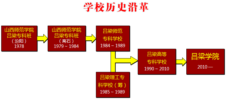 1984年,吕梁师范专科学校正式建立。6月2日,山西省人民政府(84)晋政函61号文件《关于建立临汾、吕梁师范专科学校的批复》,批准吕梁师范专科学校建校。